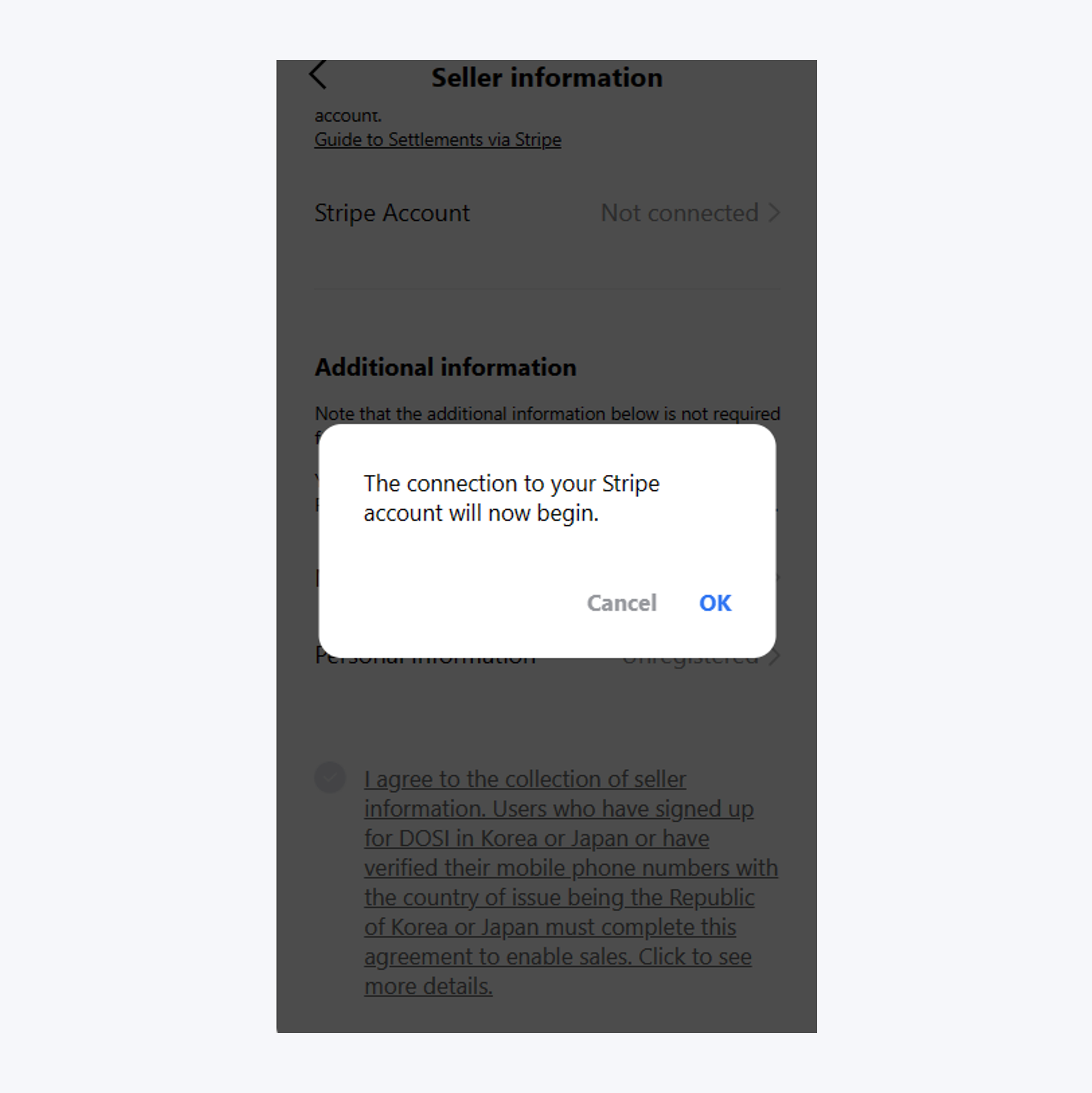 ※The Stripe account and country information linked to the DOSI account cannot be changed.