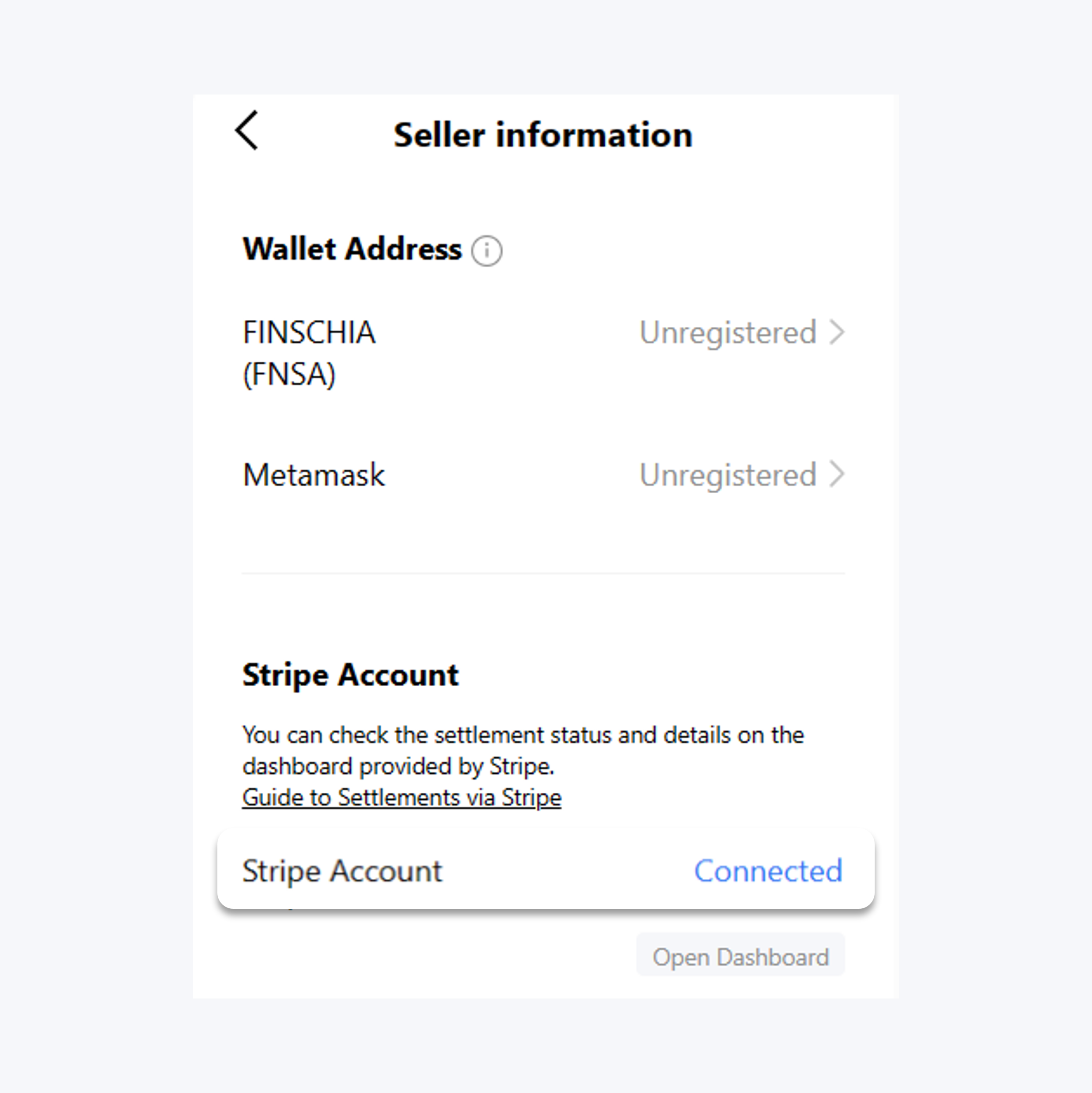 ※Only one Stripe account, FINSCHIA, and Metamask wallet address can be registered per DOSI account.
